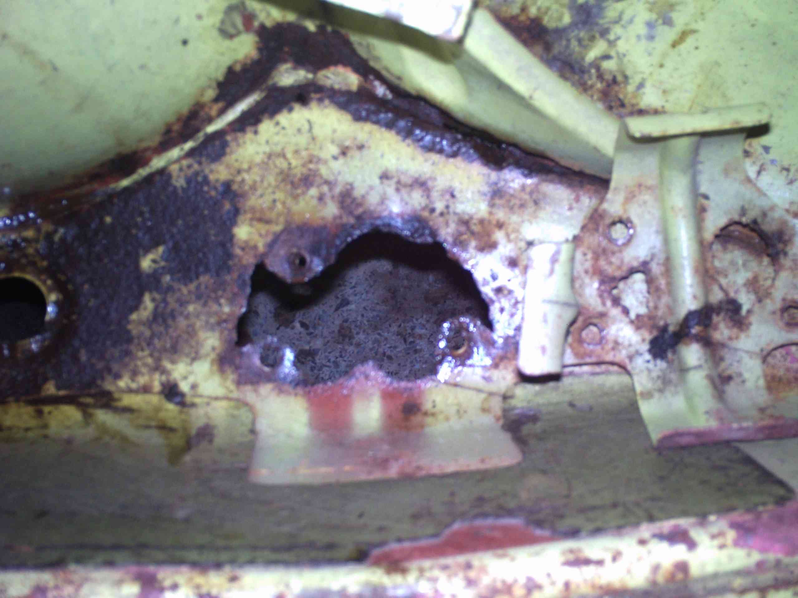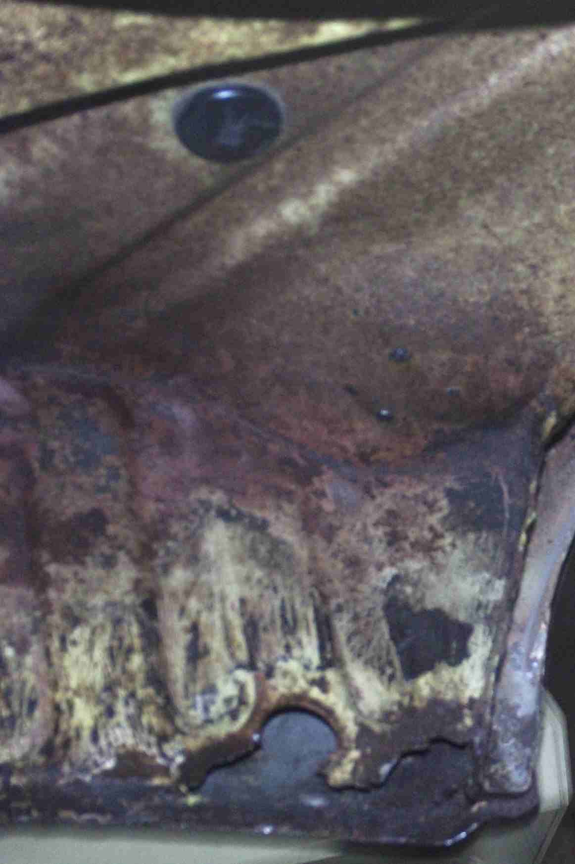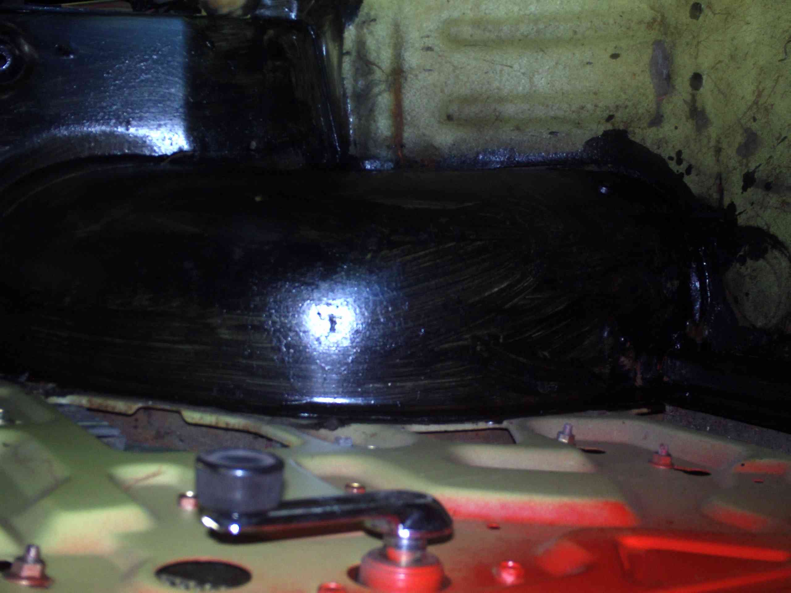Au niveau des pieds du conducteur , un autre trou decouvert sous du silicone