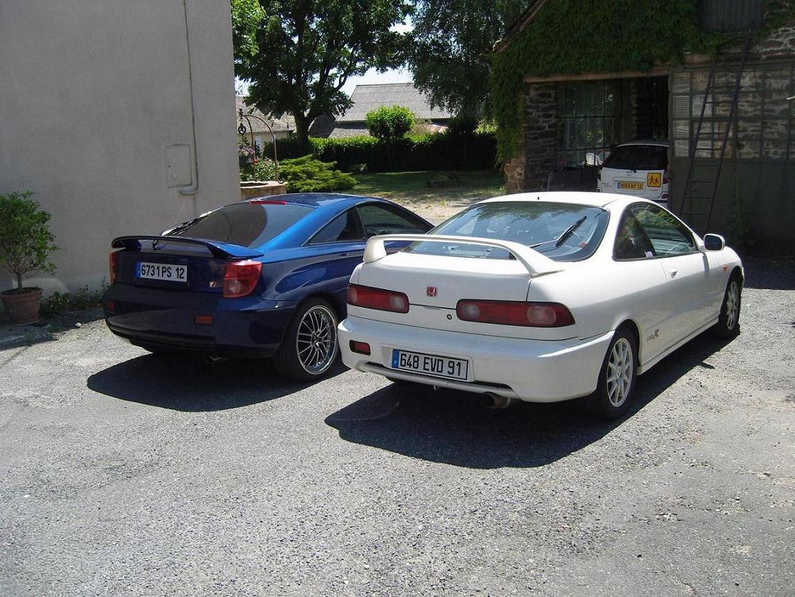 Aprés un long moment d'absence(pas mal de soucis de connexion internet...), me revoiçi, le forum à considérablement grandit! Depuis, je suis passé aux choses sérieuses, j'ai remplacé mon Alfa 147 diesel :? (on rigole pas :lol: ) par un celica t23 TS :twisted: et là ça envoie du bois! Voiçi quelques photos en compagnie d'une autre (sportive) japonaise...