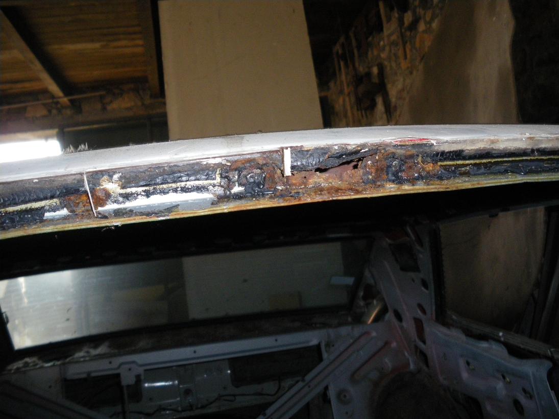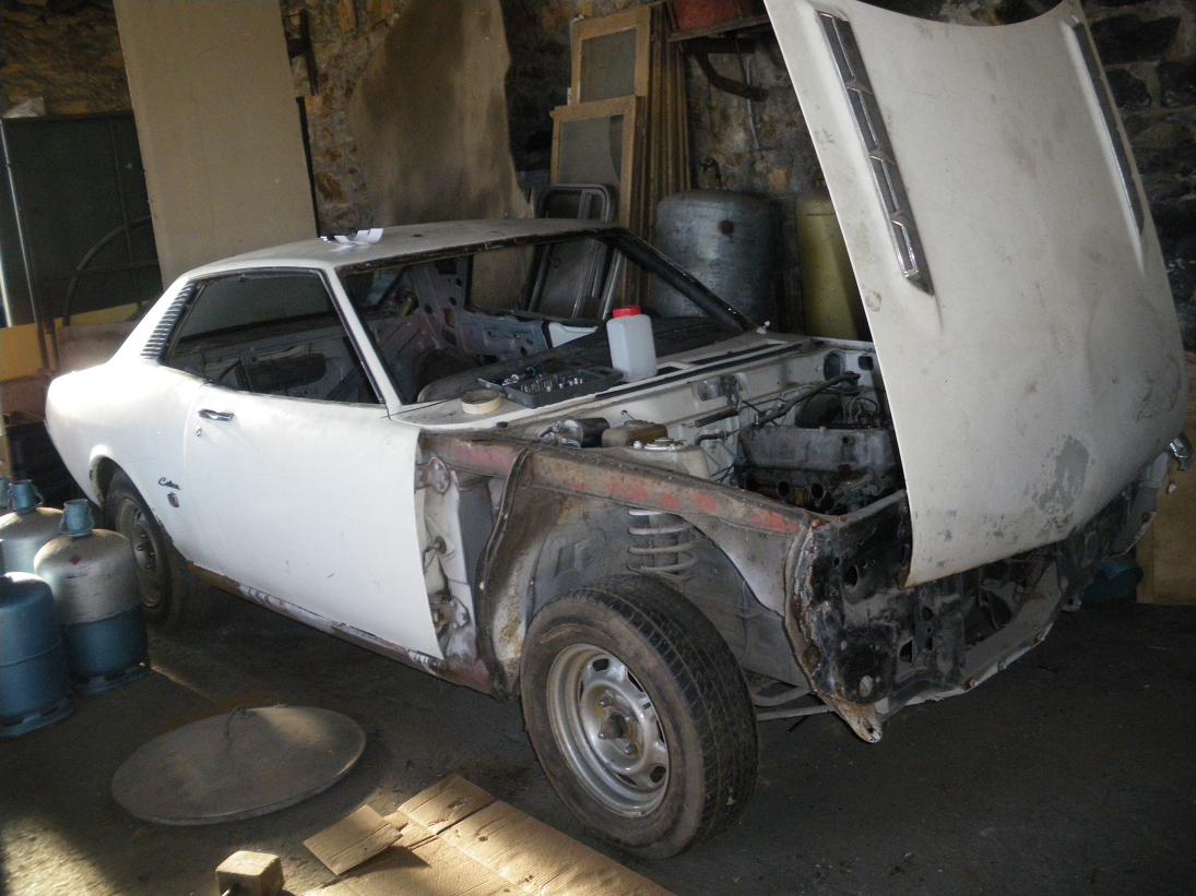 Pour la restau, tout est à faire! Vu qu'il y avait un toit vinyle, pas de rouille sur les baies de pare-brises (en haut!), les porte-à-faux ar sont à reprendre (rouille aussi), en peu les passages de roues (à cause des baguettes!), et enfin il y a eu un léger choc av droit donc quelques coups de marteau à donner. Point positif, les bas caisses sont sain... Voilà, y a du taf...