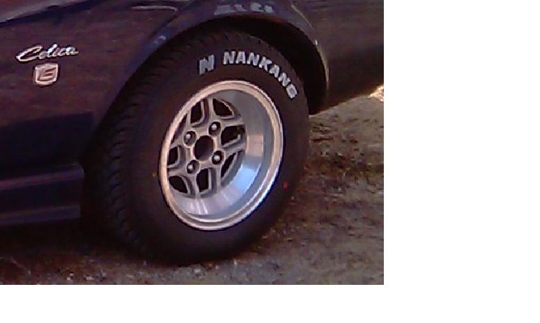 j'ai fait des zoom alors pour info il sagit de jantes "TOM'S IGETA" des 70's 80's en 13x7 les montures sont des NANKANG en 185 70 13, j'ai pris les gommes speciales neige (cloutables) pour le look un peu oldschool en plus vu que c'est de la gomme tendre la voiture se place dans les courbes tel un train sur des rails avec la largeur des jantes et celle des pneus ca donne un aspect gros boudins
